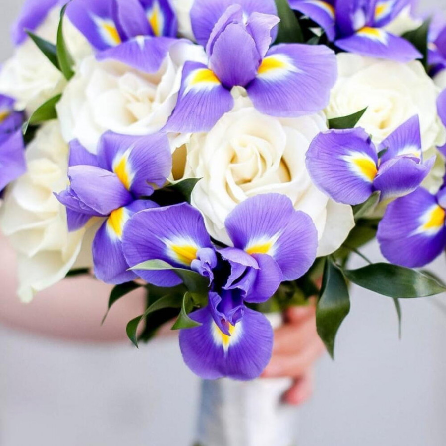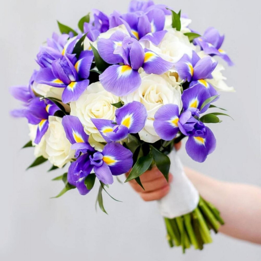 Букет невесты из белых роз и ирисов
