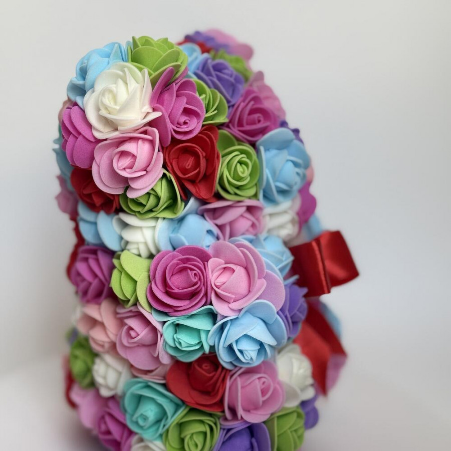 Rose Bear «Luxury» — медвежонок из более 100 фоамирановых роз, высота 25 см. Не вянет, не требует ухода, гипоаллергенен, устойчив к влаге. В комплекте подарочная коробка и открытка. Идеален для Дня рождения, 8 Марта, годовщины, признания в любви.